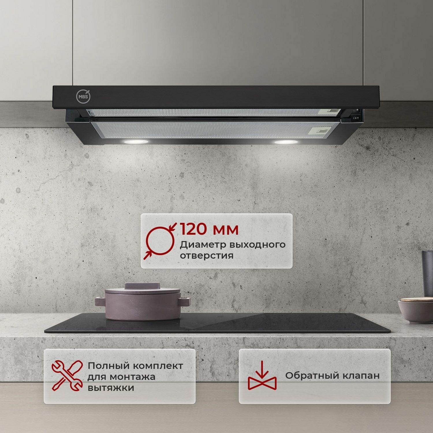 Кухонная вытяжка встраиваемая MBS ARALIA 150 BLACK/50 см/производительность 750м3/ч, низкий уровень шума. информация: