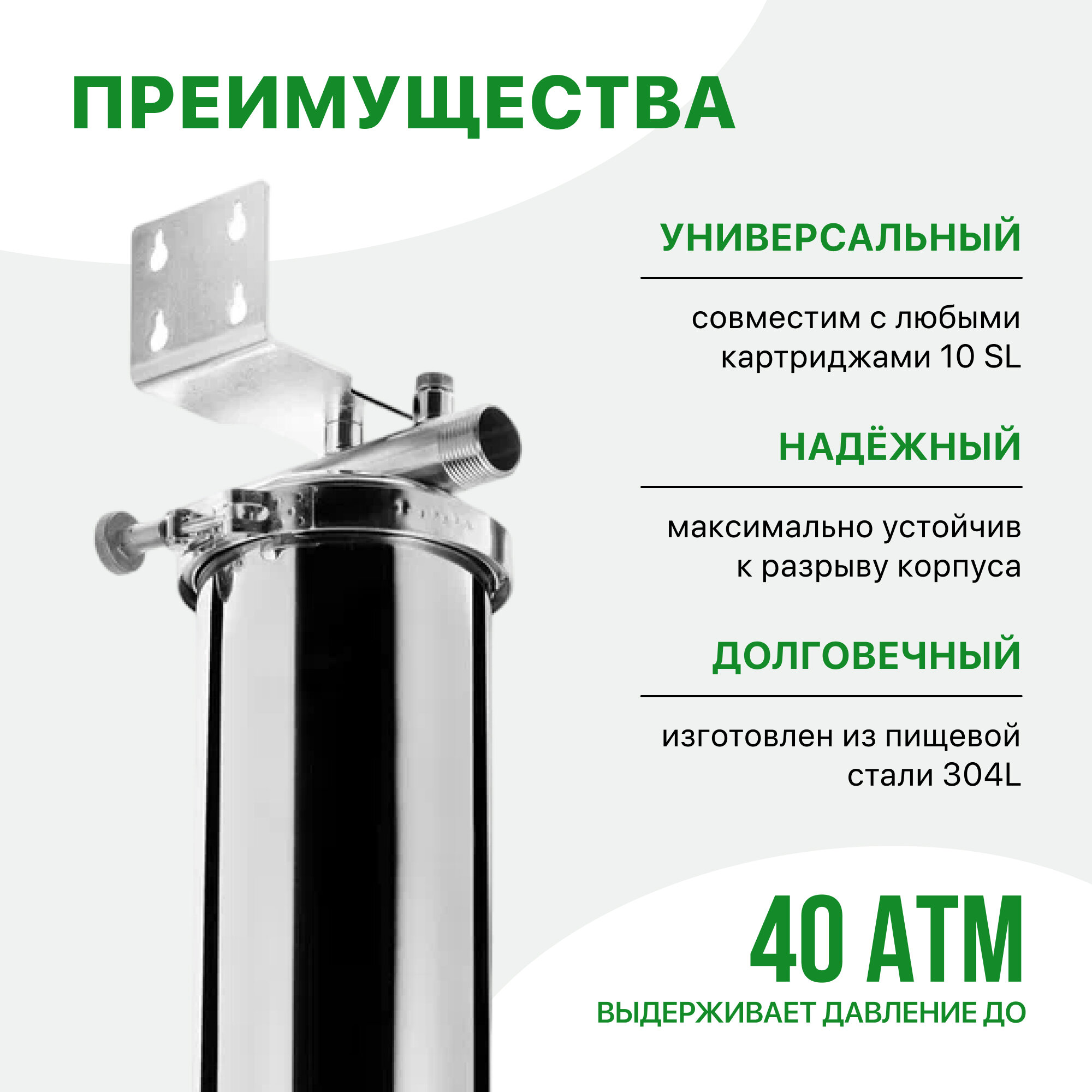 Корпус магистрального фильтра Ecovita 1/2" 10SL для горячей воды + 5 картриджей PPH 10 мкм 10SL
