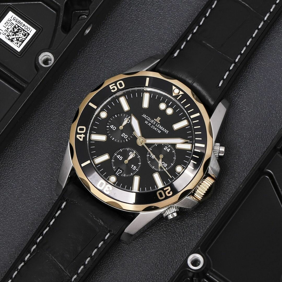 Отзывы на Наручные часы Jacques Lemans 1-2091D, мужские кварцевые спортивные часы Жак Леман с хронографом и датой на комбинированном ремне (силикон и кожа)