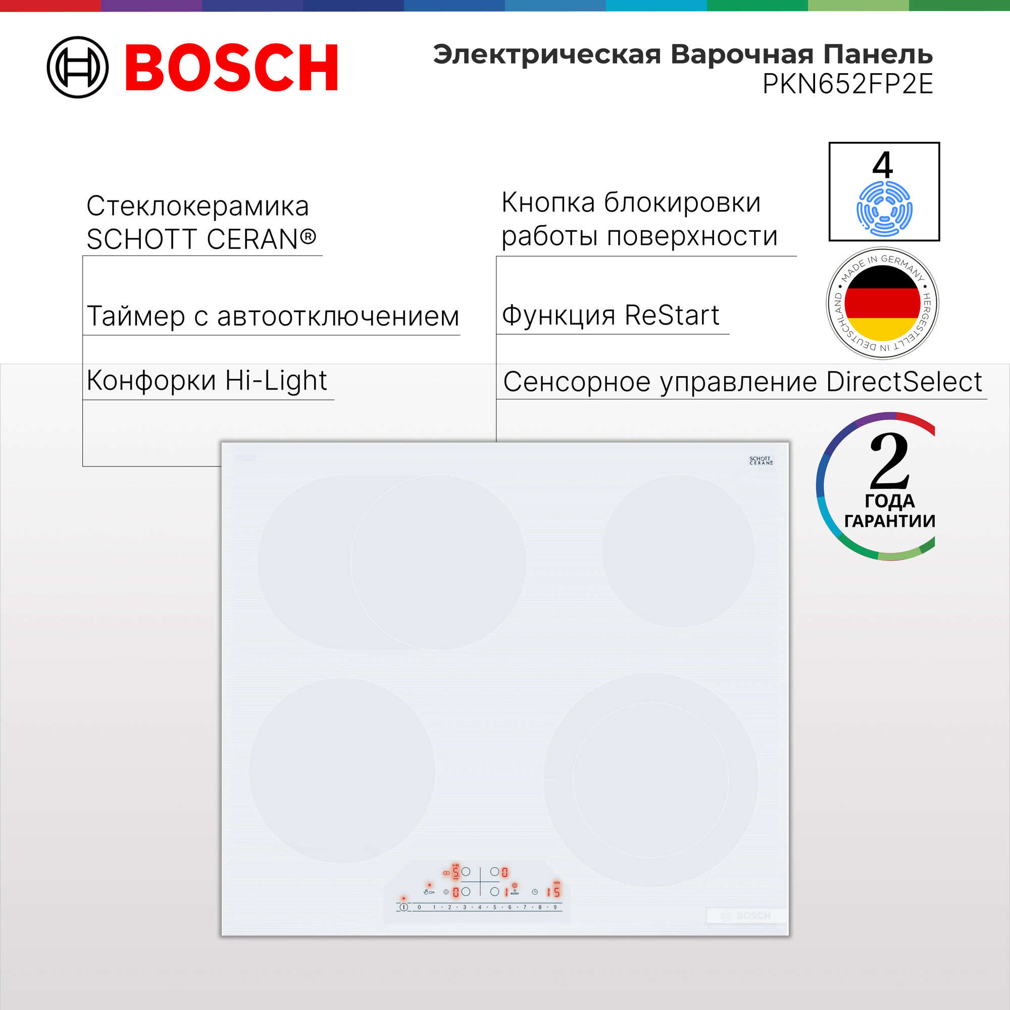 10 цен на Варочная панель электрическая Bosch PKN652FP2E, Сенсорное управление, Cleaning-пауза, Блокировка от детей