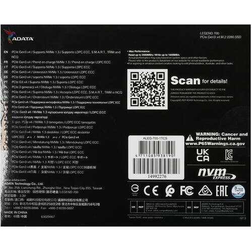 1000 ГБ SSD M.2 накопитель ADATA LEGEND 700 [ALEG-700-1TCS] информация: