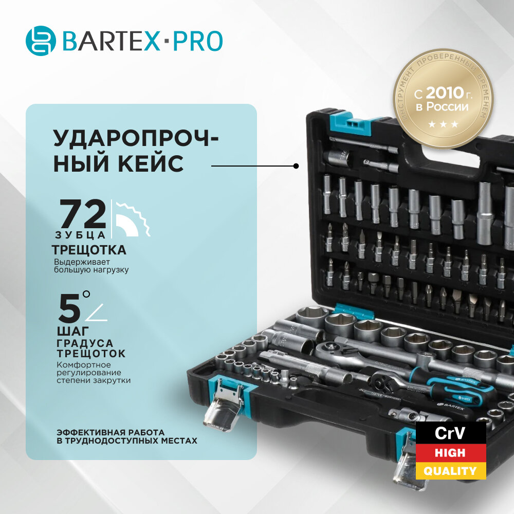 Набор слесарных инструментов Bartex, 1/2", 1/4", 6-гранные, сталь, кейс, 94 предмета 10 116 ₽