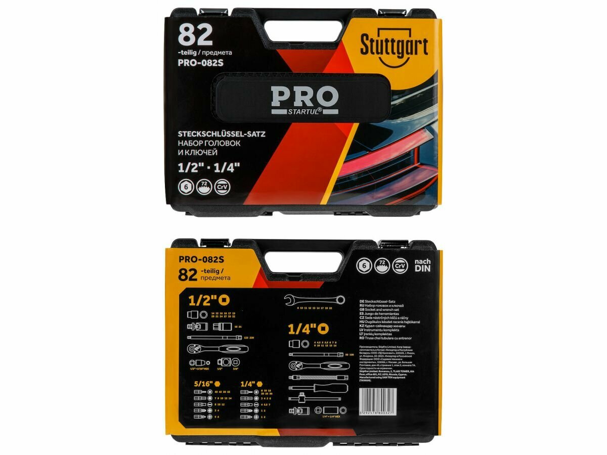 Набор инструментов 1/4", 1/2" 6 граней 82 предмета PRO STARTUL Stuttgart (PRO-082S)