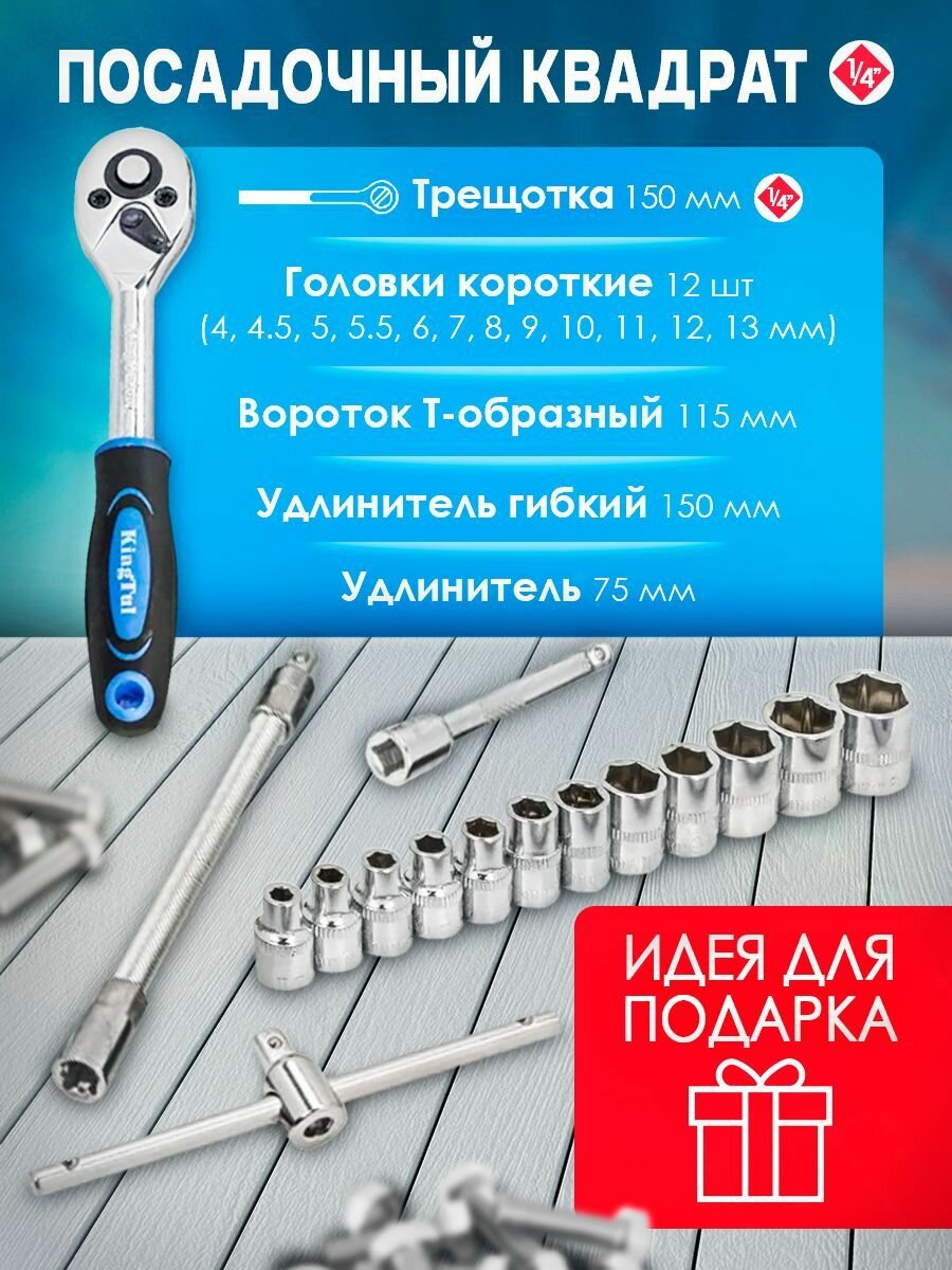 10 цен на Набор инструментов KINGTUL 82 пр. 1/4''3/8''(6гр.)(4-22мм)