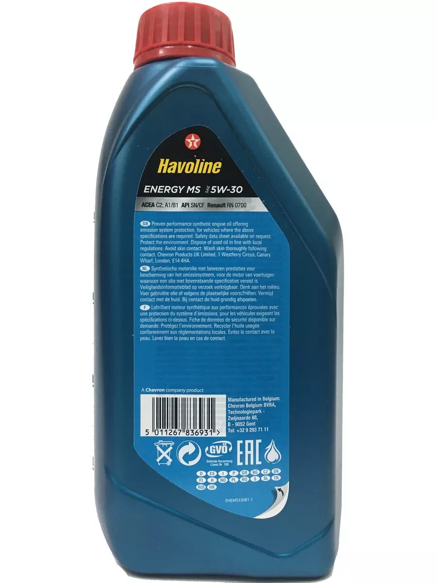 TEXACO T801735NKE Масло HAVOLINE ENERGY MS 5/30 API SN/CF, ACEA C2, A1/B1,A5/B5, Renault RN 0700, PSA B71-2290, Iveco