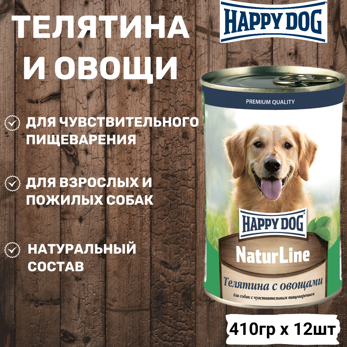 HAPPY DOG NATUR LINE для взрослых собак с телятиной и овощами (970 гр х 12 шт)