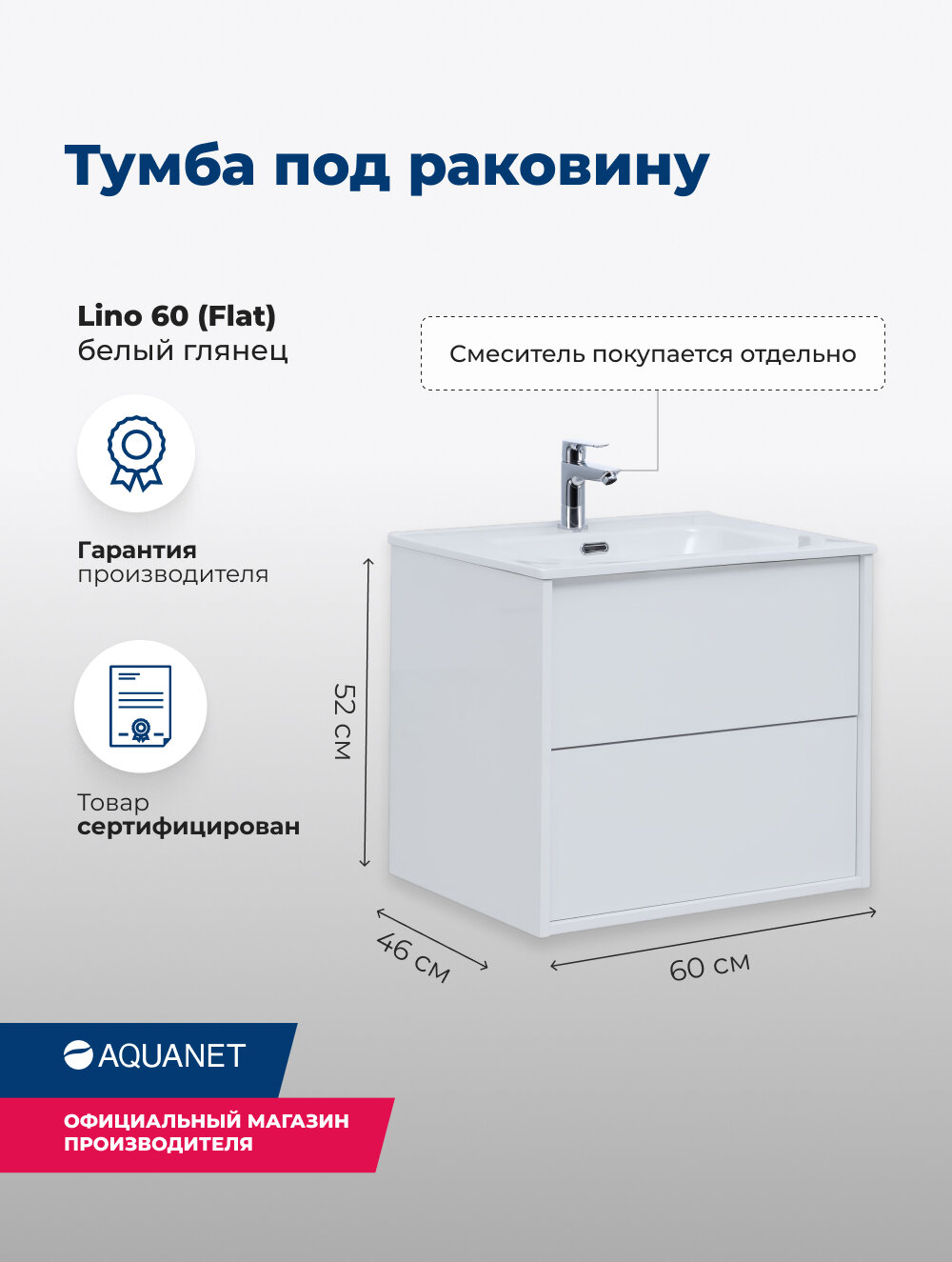 Тумба Aquanet Lino 60 (Flat) белый глянец (287540) информация: