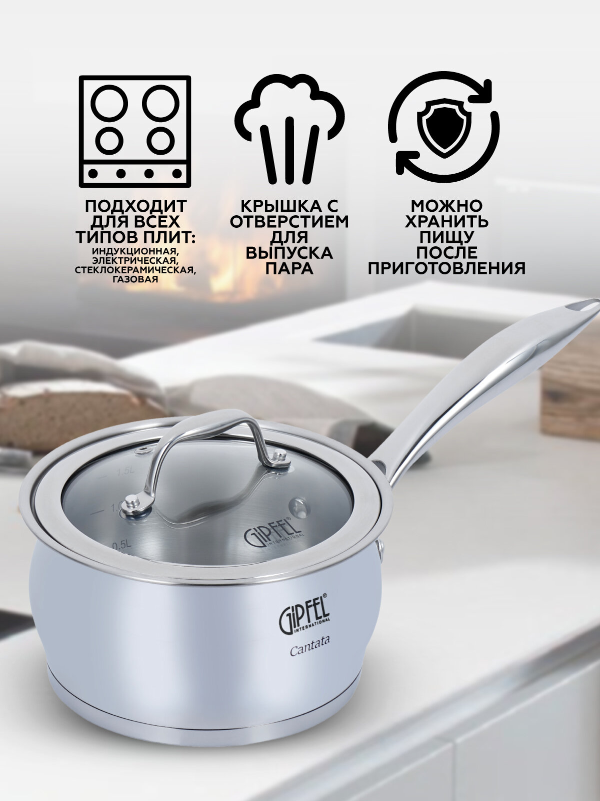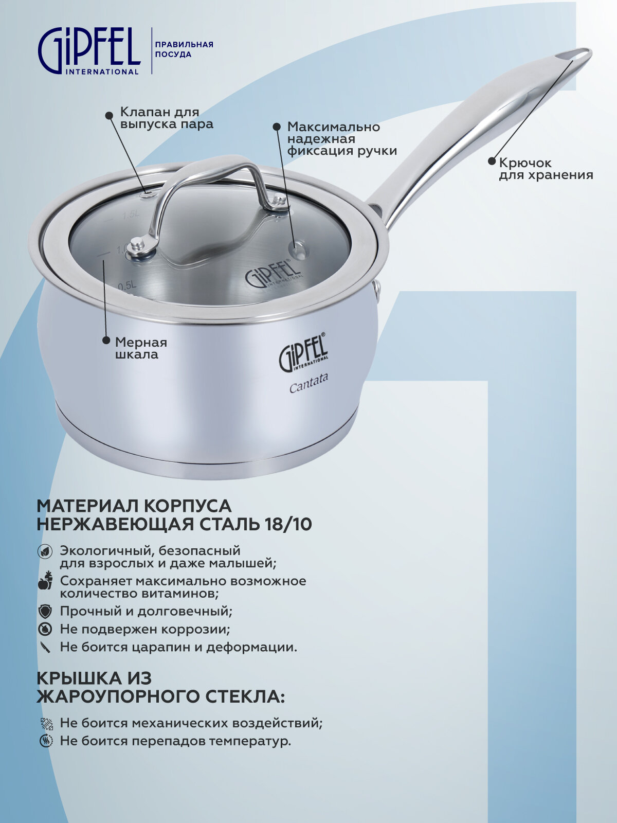 Отзывы на Ковш из нержавеющей стали Gipfel Cantata 1261 16 см/1,8 л стальной