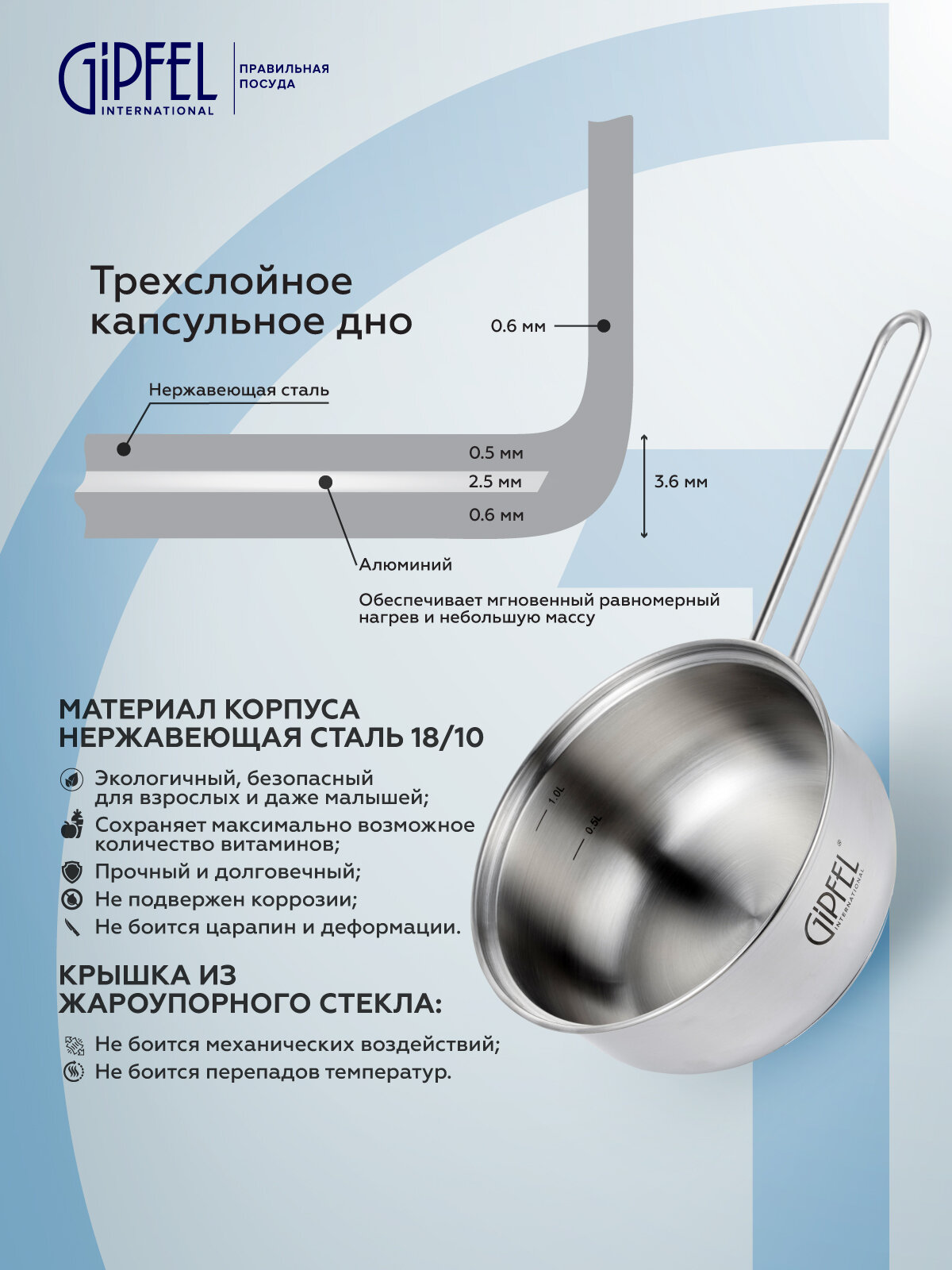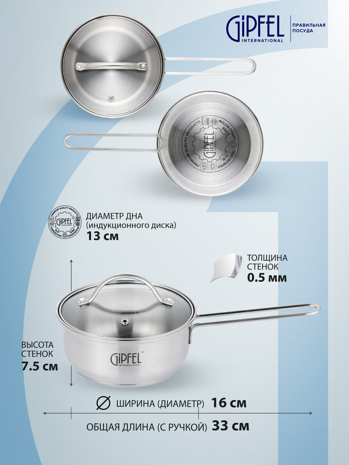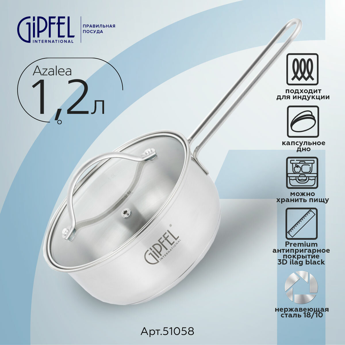 Ковш Gipfel Azalea 51058 16 см/1,2 л стальной информация: