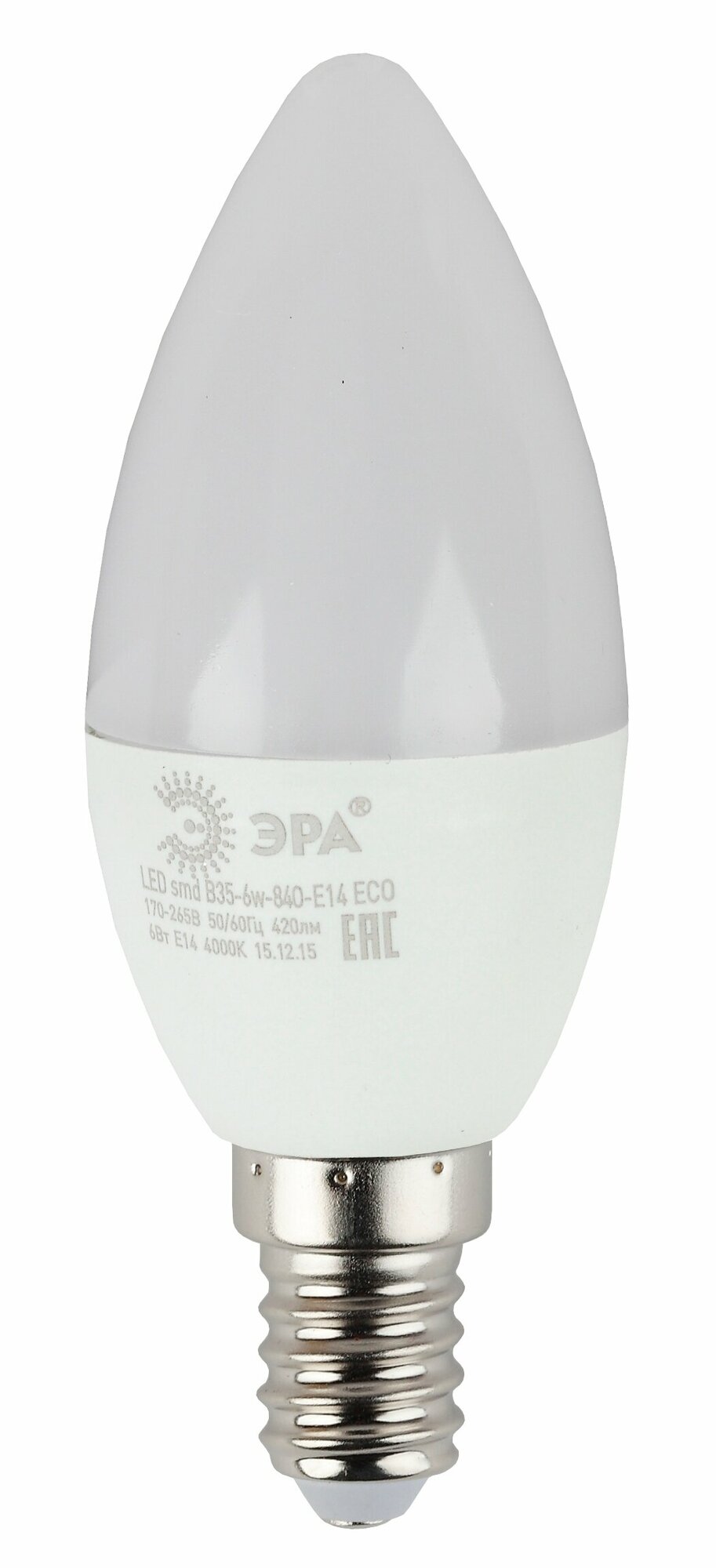 Лампочка светодиодная ЭРА LED B35-6W-840-E14 R 4000K свеча 6 Вт информация: