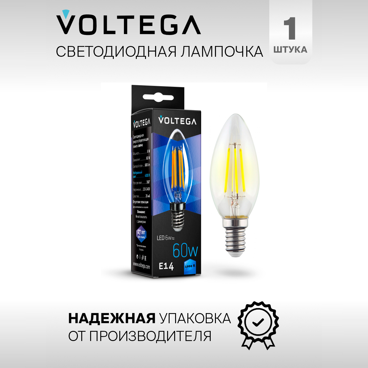 10 цен на Лампочка светодиодная E14 форма свеча 6W нейтральный белый свет Voltega Crystal Candle 4000K 1 штука