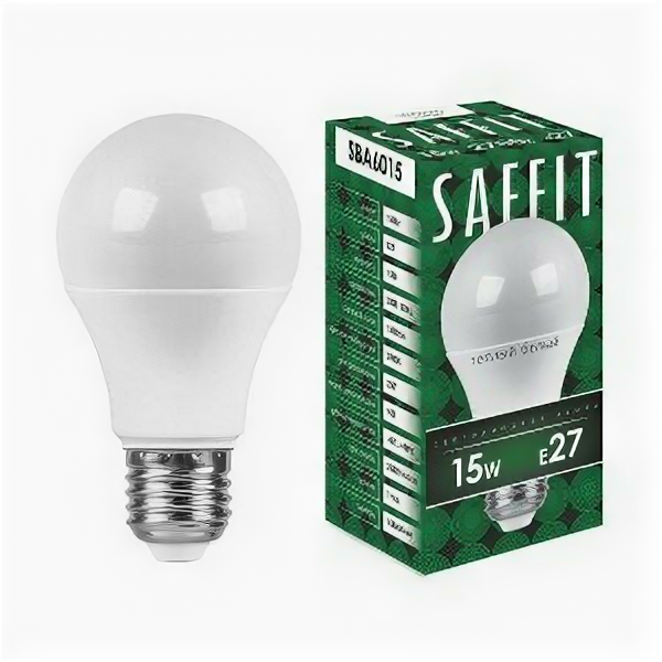 Лампочка светодиодная Saffit 15Вт 230V E27 2700K A60, SBA6015, 55010