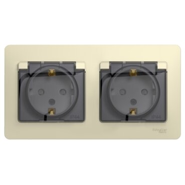 Розетка 2-м СП 2мод. Glossa 16А IP44 с заземл. защ. шторки в сборе беж. | код GSL000247 | Schneider Electric (6шт.в упак.)