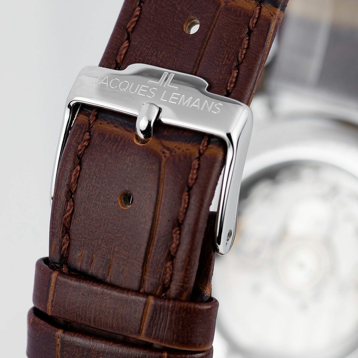 10 цен на Наручные часы Jacques Lemans 1-2087B, мужские механические с автоподзаводом классические часы Жак Леман скелетон на кожаном ремне