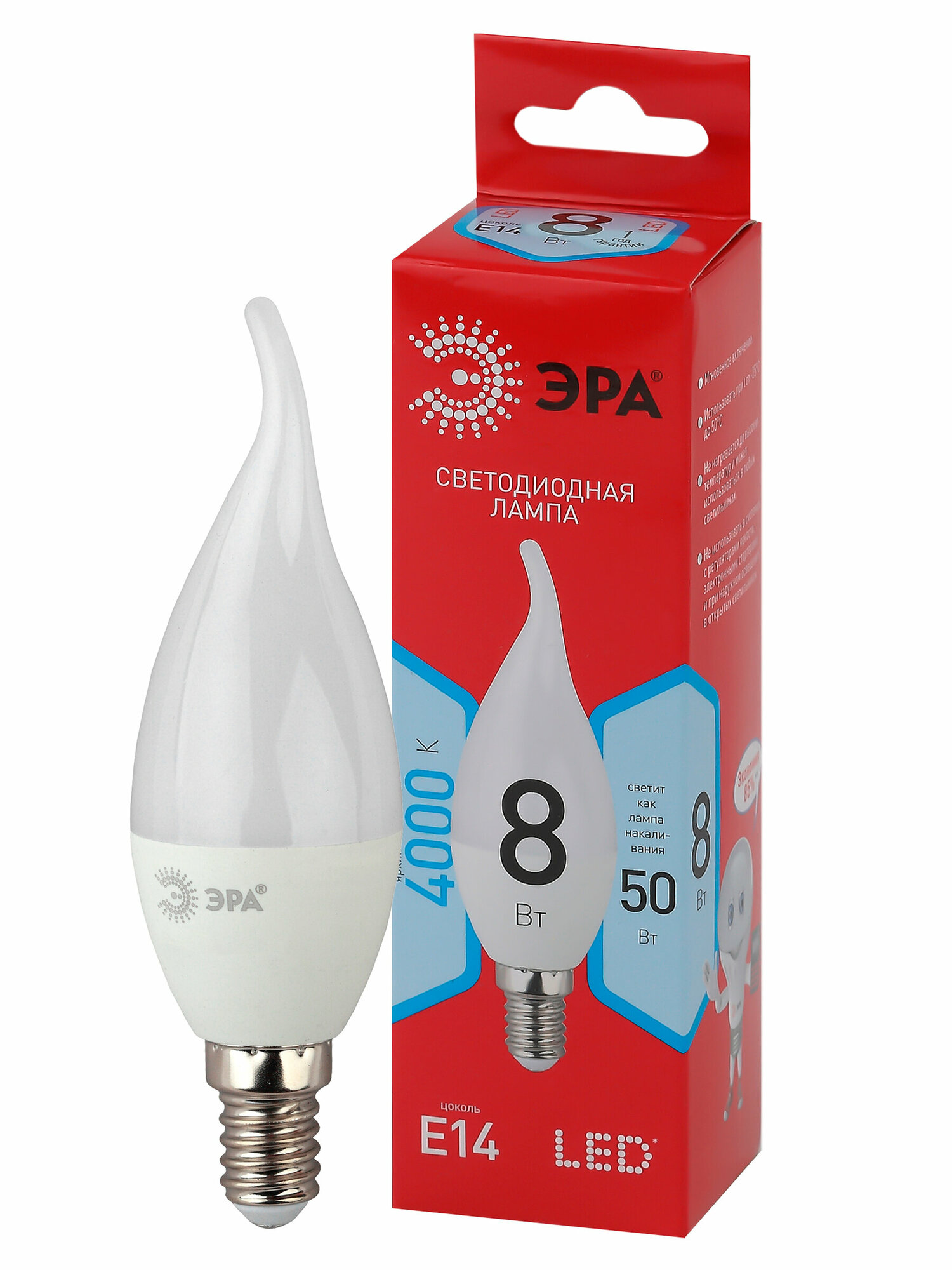 Лампочка светодиодная ЭРА LED BXS-8W-840-E14 R 4000K свеча на ветру 8 Вт информация: