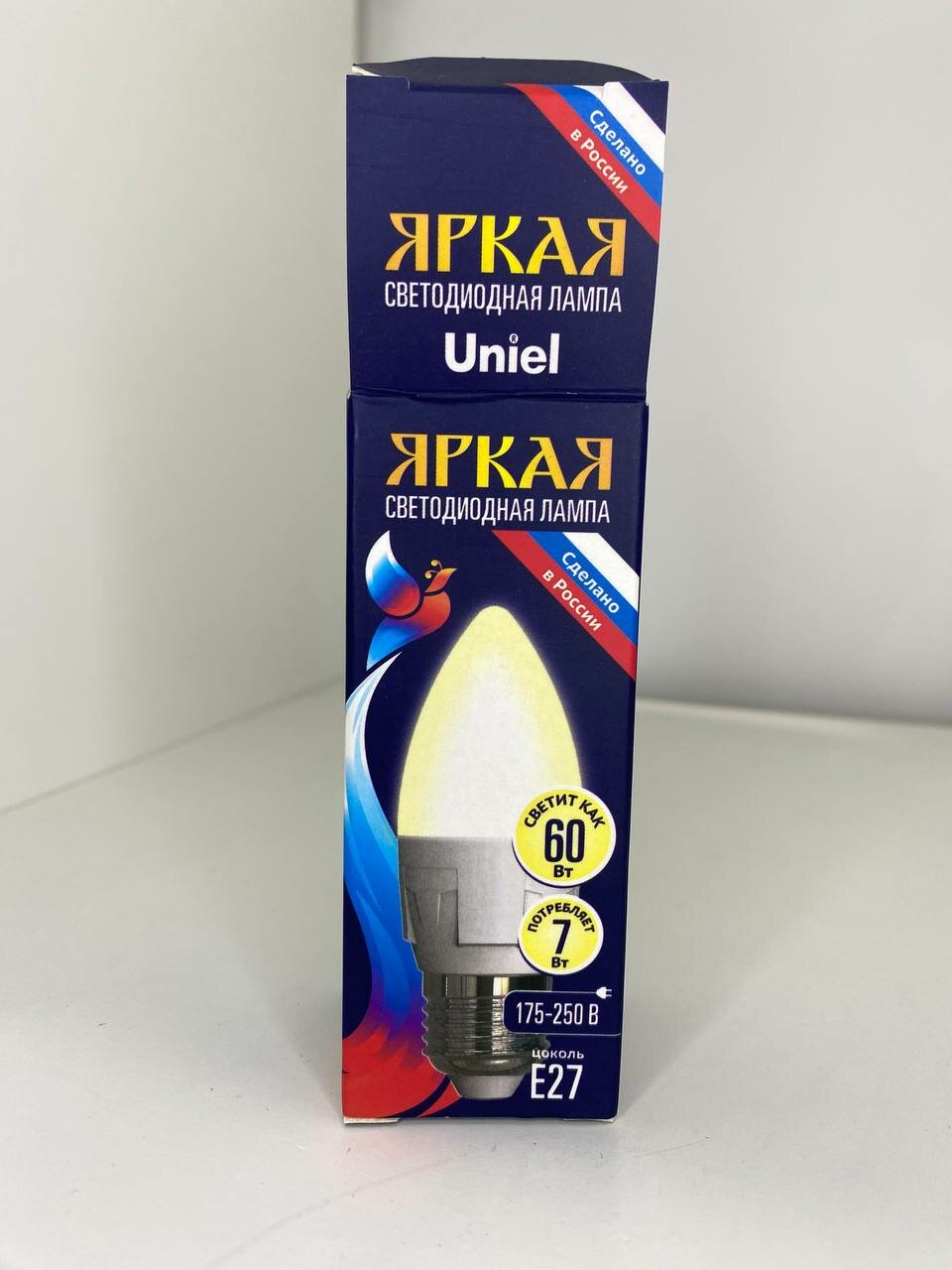 Отзывы на Светодиодная лампа Uniel Форма свеча, матовая. Серия яркая LED-C37 7W/WW/E27/FR PLP01WH UL-00002414