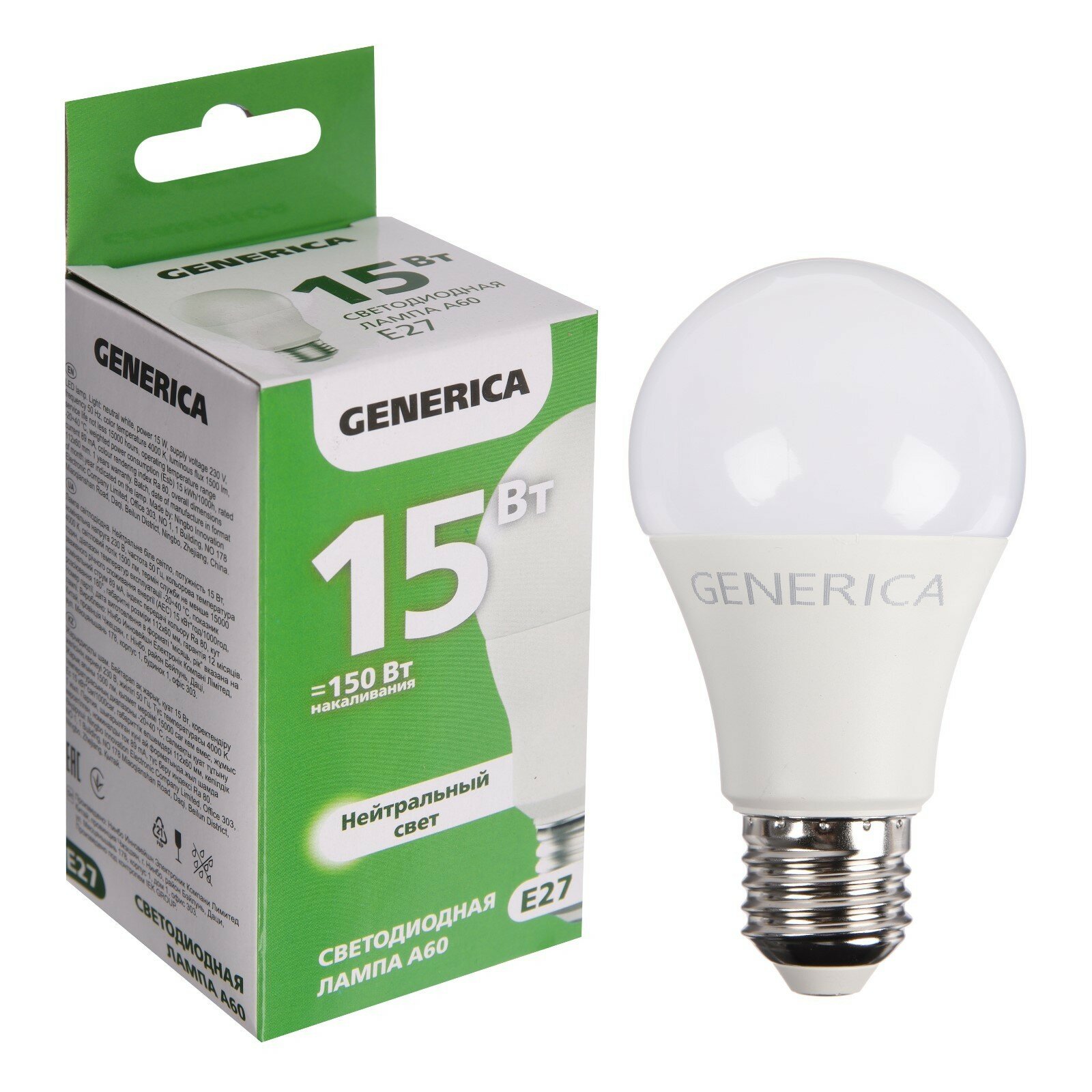 Отзывы на Лампа светодиодная A60 15Вт грушевидная 4000К E27 230В | код. LL-A60-15-230-40-E27-G | GENERICA ( 1шт. )