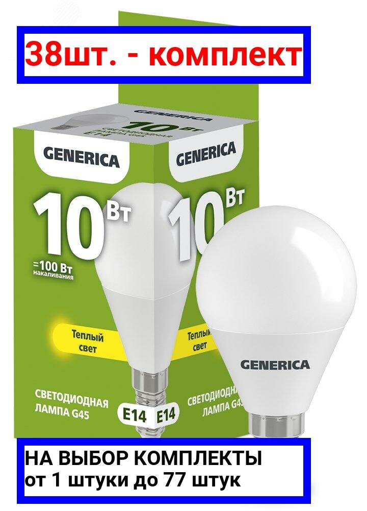Лампочка светодиодная GENERICA Е14 10Вт=100Вт 230В 3000К теплый свет шар (комплект из 10 шт.) 837 ₽