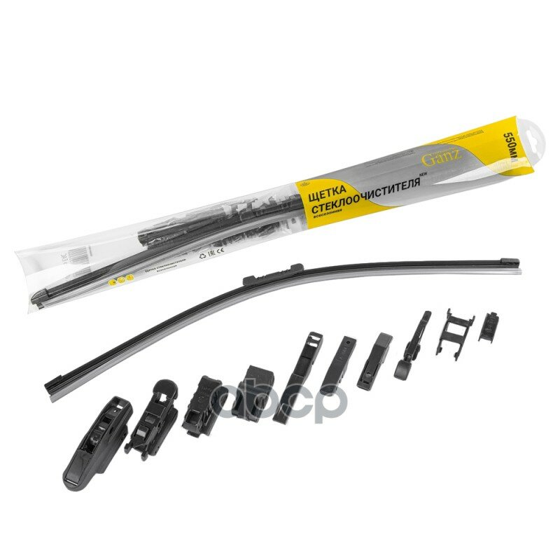 Отзывы на Щетка стеклоочистителя 550 мм бескаркасная 1 шт (10 адаптеров) GANZ NEW GIS01035