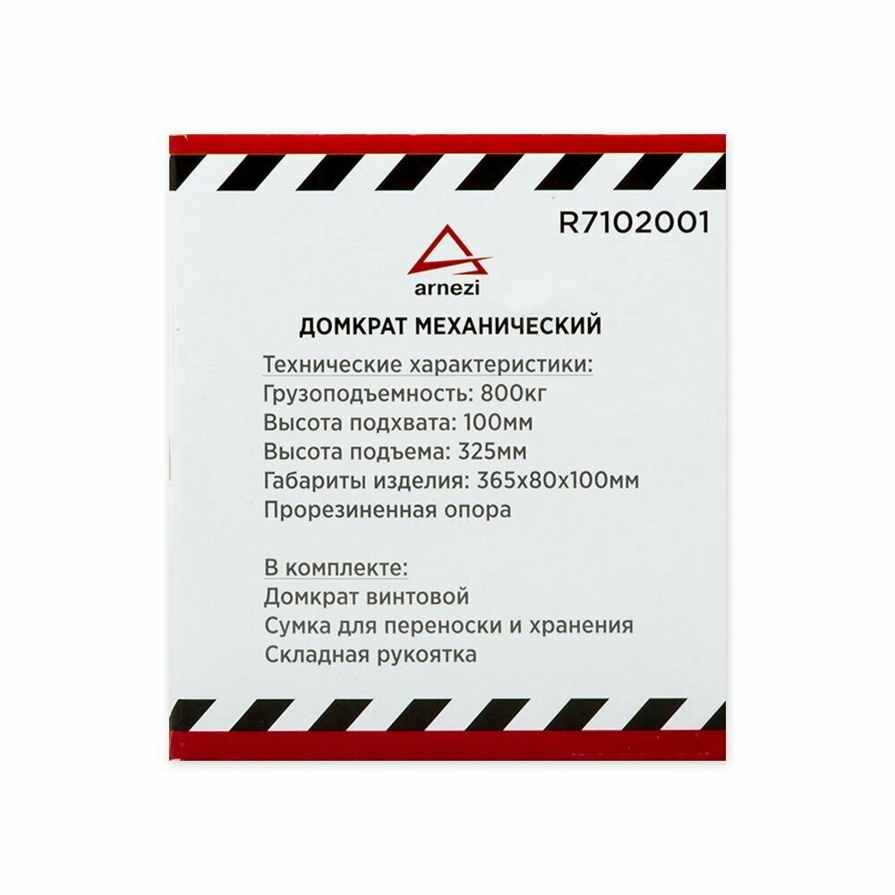 Домкрат механический винтовой ромбовидный 0.8т 85-330мм ARNEZI R7102001 ARNEZI R7102001