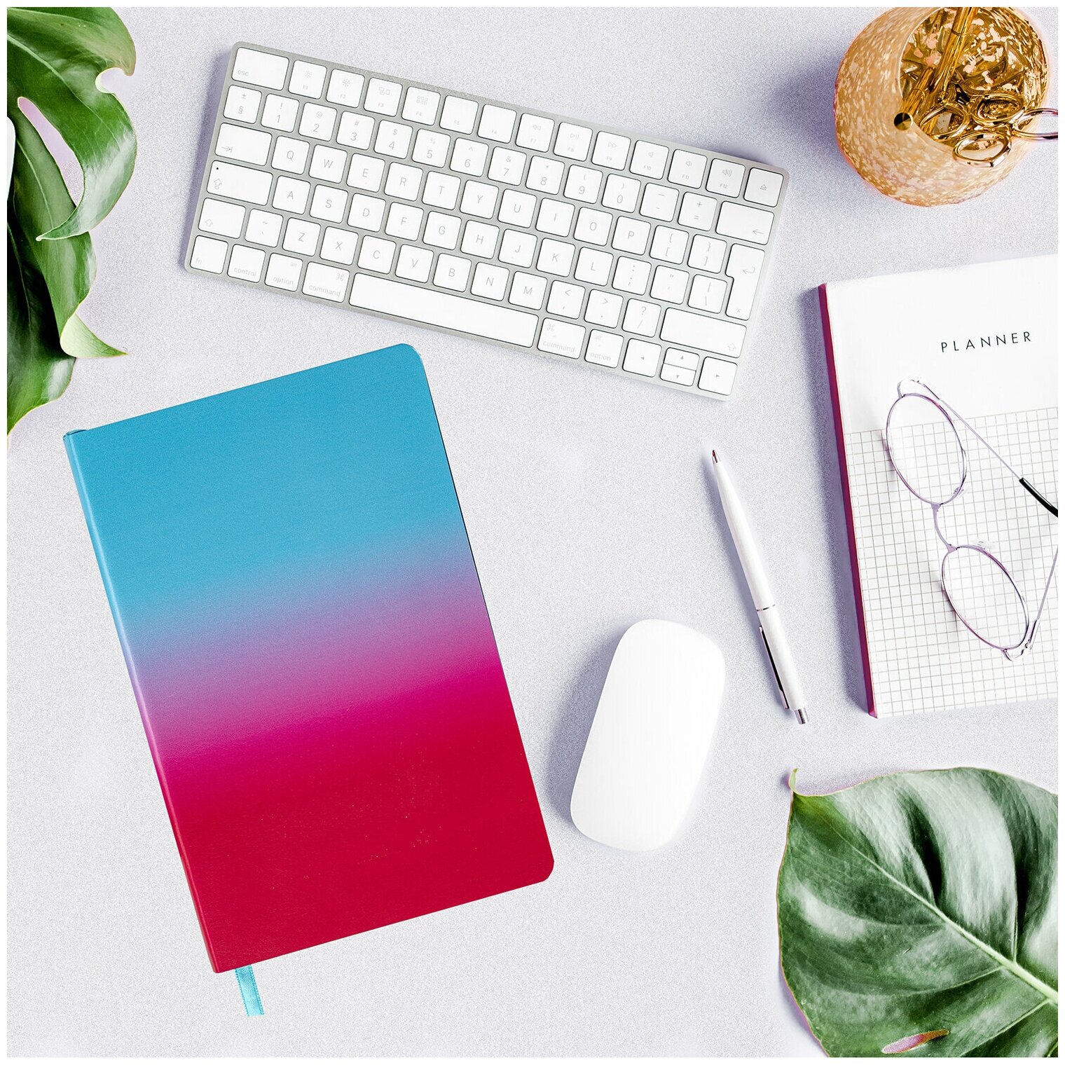 Ежедневник-планер (планинг) / записная книжка / блокнот недатированный А5 138х213мм Brauberg Gradient под кожу, 136 листов, синий-зеленый, 114460