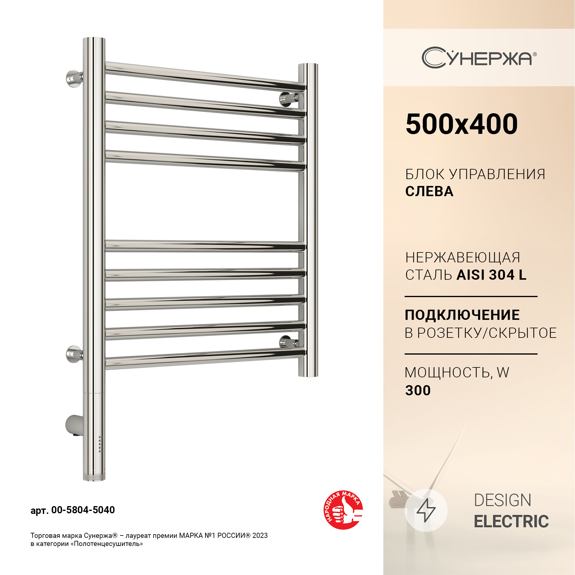 Полотенцесушитель электрический Сунержа Богема 3.0 прямая 500х400 МЭМ левый Без покрытия 00-5804-5040 информация: