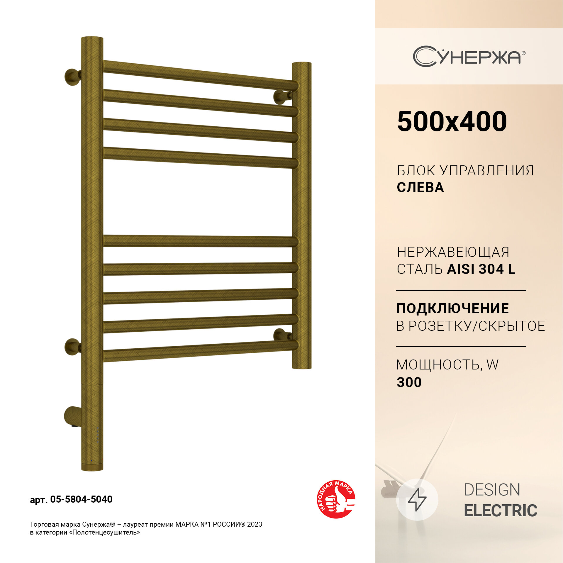 Полотенцесушитель электрический Сунержа Богема 3.0 прямая 500х400 МЭМ левый Золото 41 850 ₽