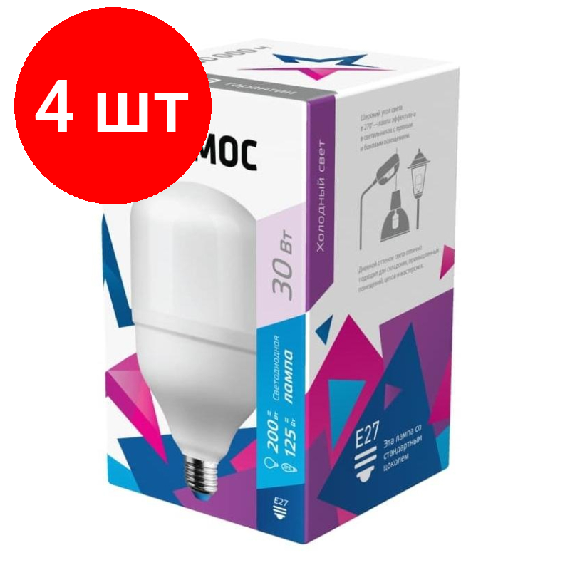 10 цен на Комплект 4 штук, Лампа светодиодная Космос 30W E27 6500k хол.бел. HW