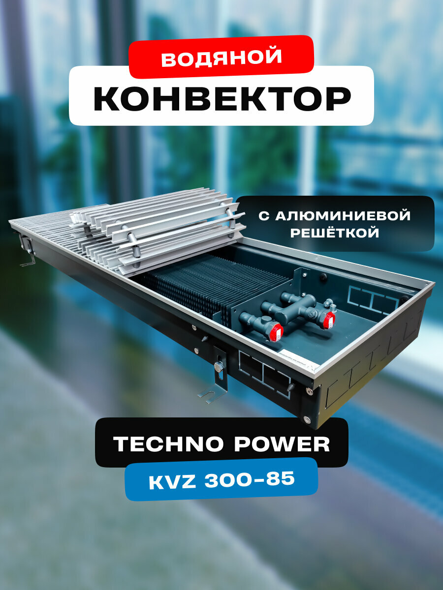 Встраиваемый водяной конвектор с решеткой Techno Power KVZ 300-85-1000 мм с естесственной конвекцией информация: