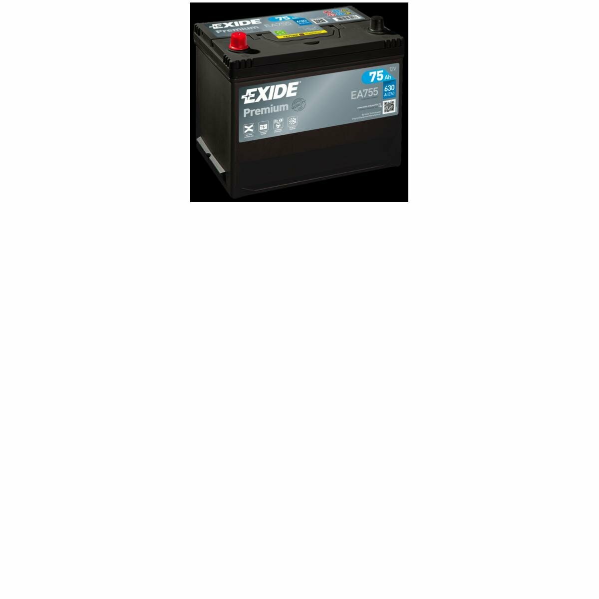 Акб 75ah 630a 272x170x225 П.П. (+-) (Premium) EXIDE арт. EA755 11 668 ₽