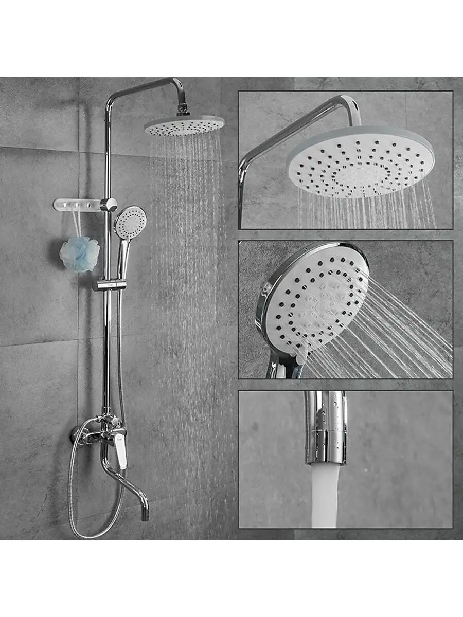 | Особенности | держатель душевой лейки / регулируемый верхний душ |