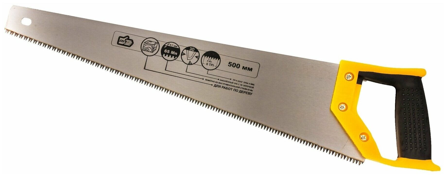 Ножовка по дереву поперечный профиль, шаг 4мм, каленый зуб ,3D заточка 500мм "888" информация: