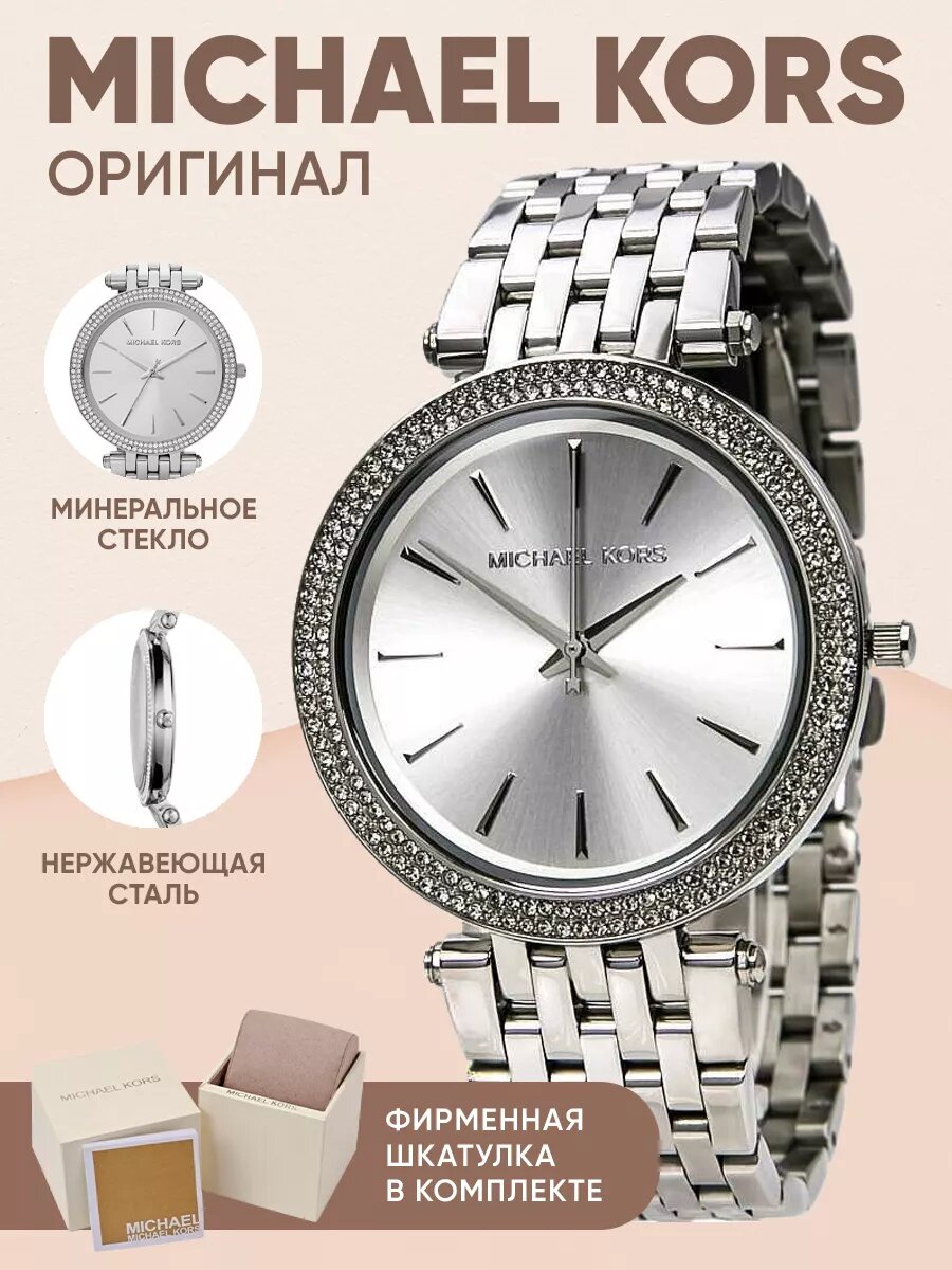 Женские наручные часы Michael Kors со стразами серебристые кварцевые информация: