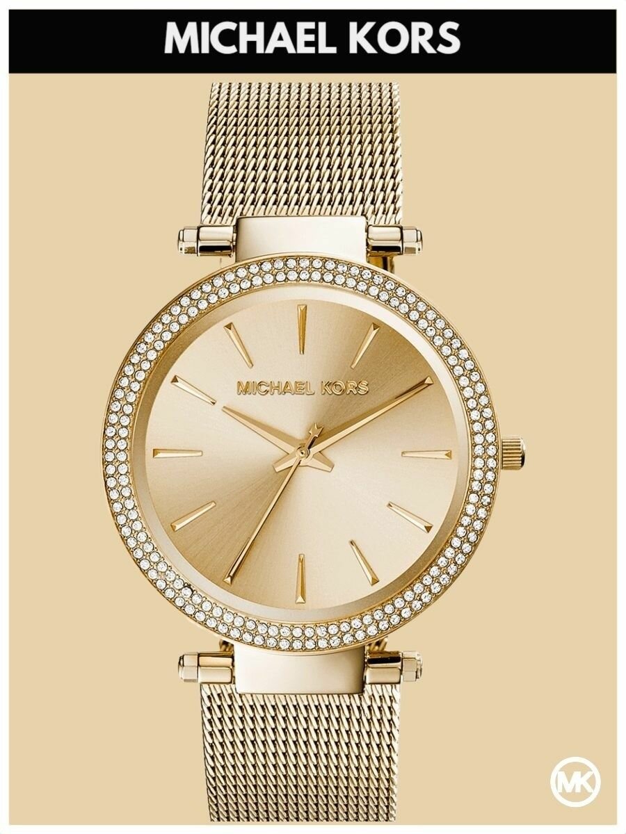 10 цен на Женские наручные классические часы Michael Kors со стразами золотистые
