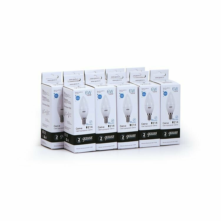 10 цен на Лампа светодиод. (LED) Свеча Е14 6Вт 450лм 4100К 230В матов. Gauss