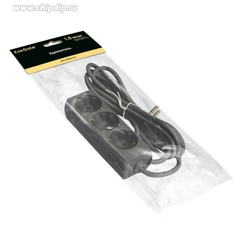Удлинитель ExeGate ECE-3-1.8B (3 евророзетки с заземлением, 1.8м, черный)