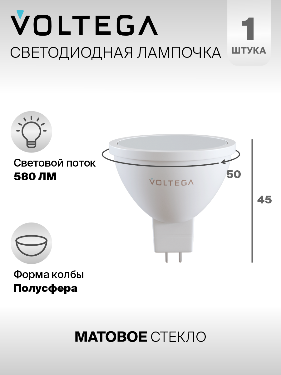 Лампочка светодиодная GU5.3 форма софит 7W нейтральный белый Voltega Simple MR16 4000K 1 штука 230 ₽