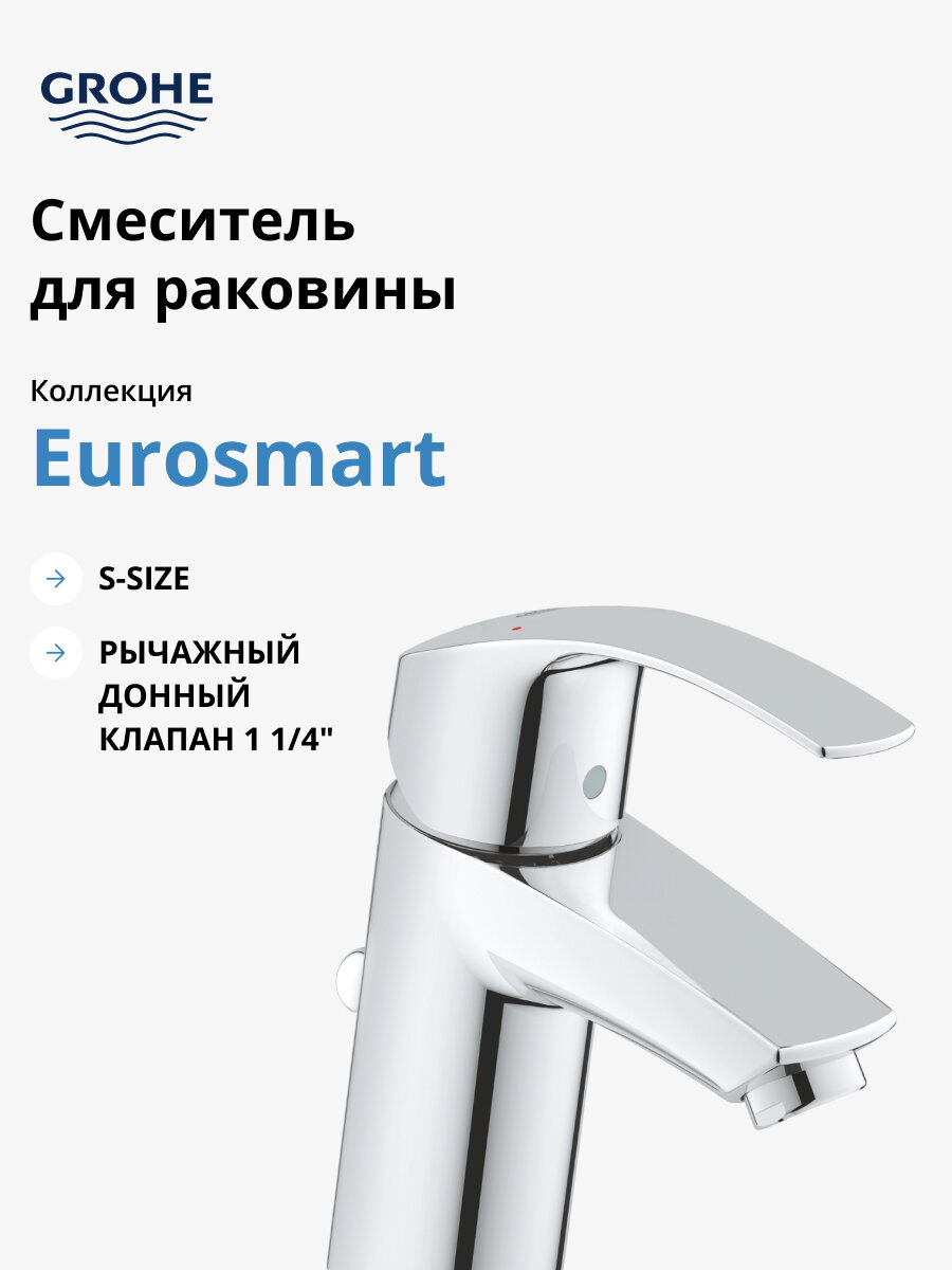Смеситель для раковины GROHE Eurosmart New с донным клапаном, размер S, хром (23788002) информация: