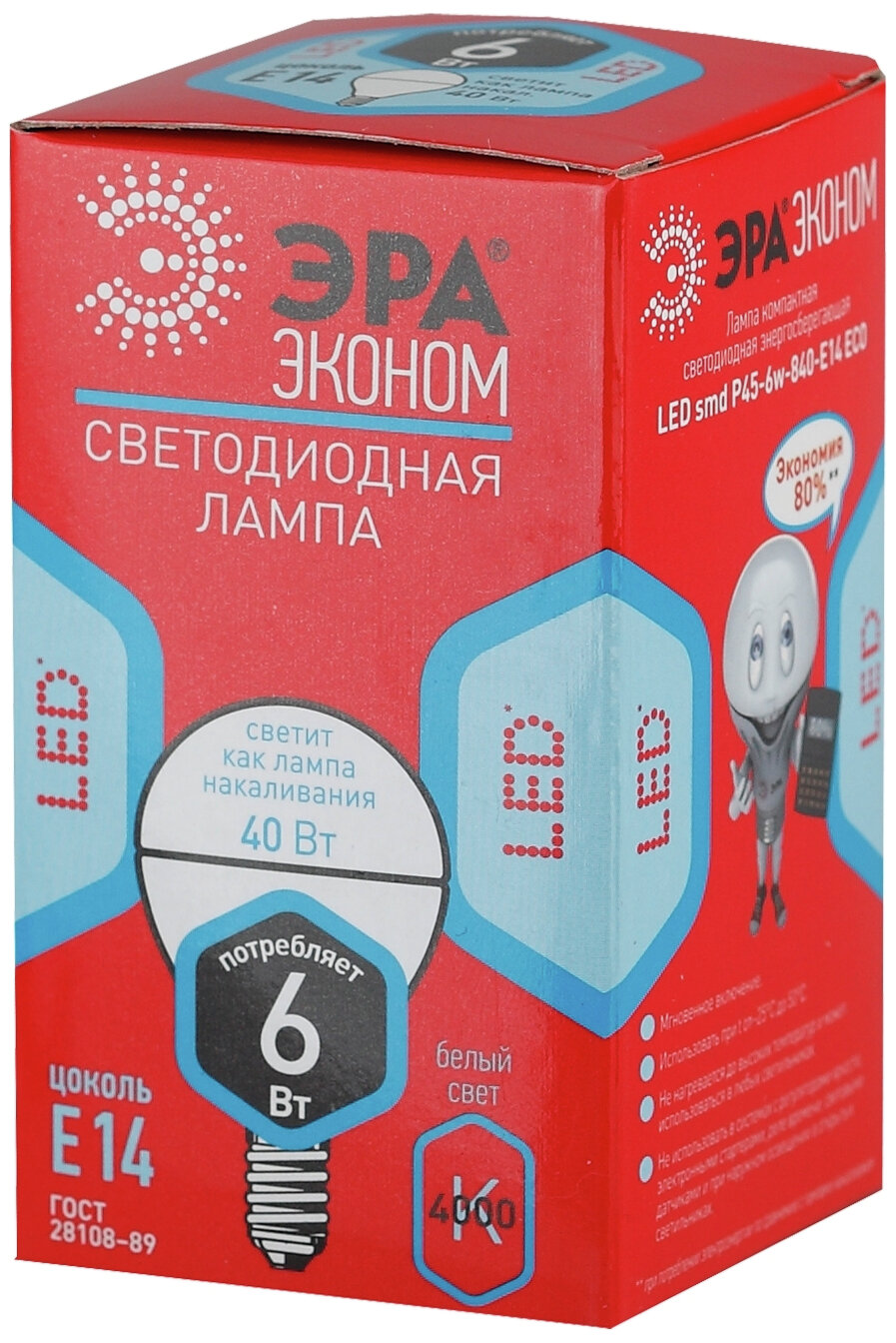 Светодиодная лампа ЭРА ЭКО E14 6 Вт 480 лм 4000 К шар информация: