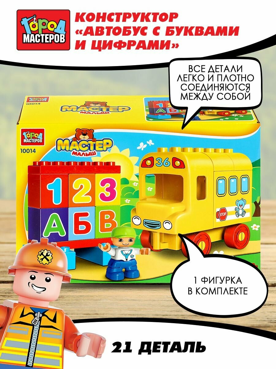 Конструктор для малышей автобус с буквами и цифрами из серии Мастер малыш 21 деталь Город Мастеров