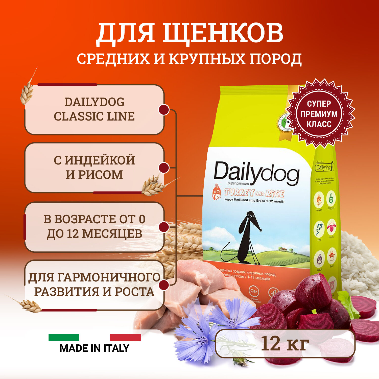 Сухой корм Dailydog для щенков средних и крупных пород, с индейкой и рисом, 12 кг 6 840 ₽