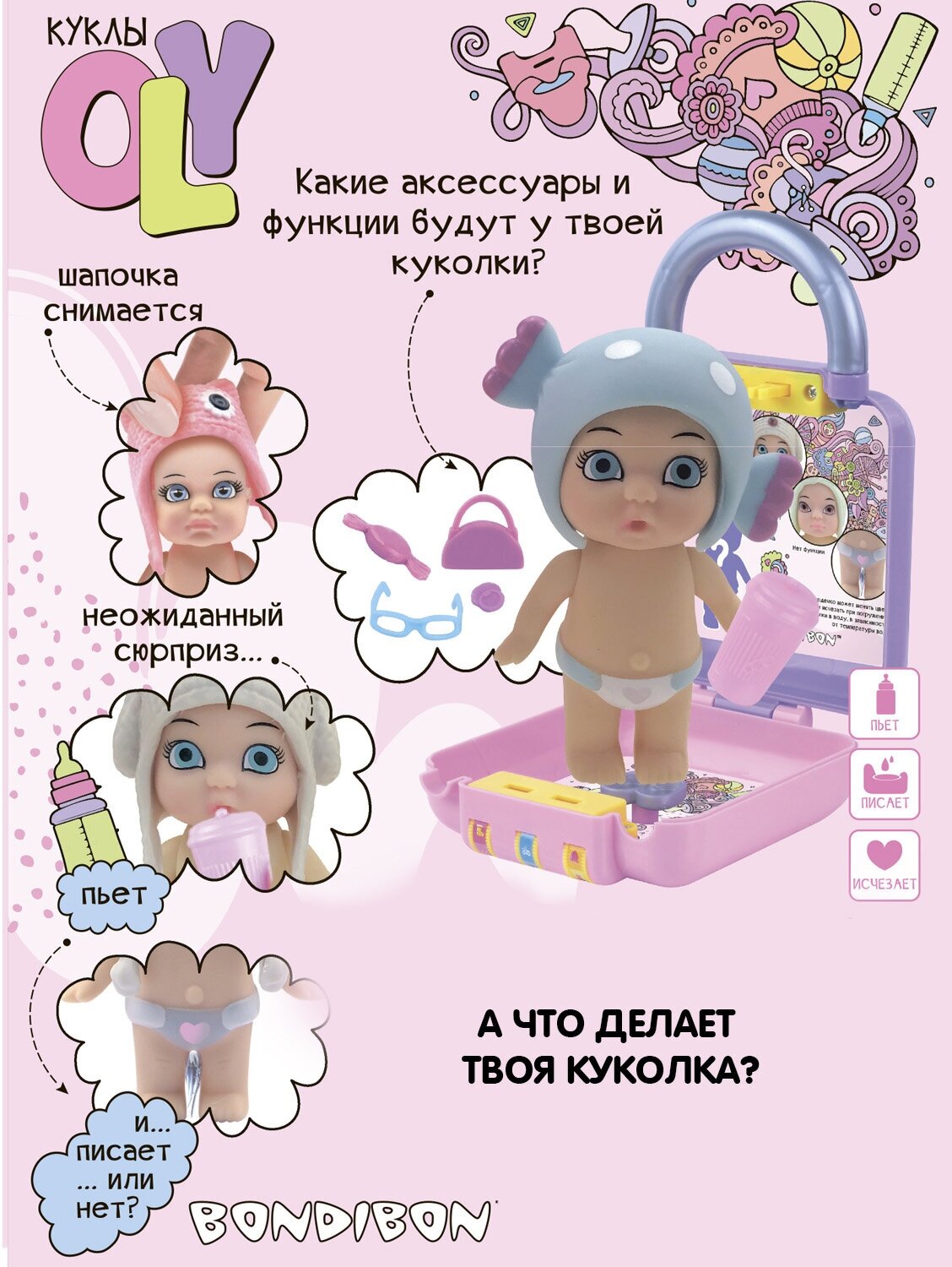 Отзывы на Набор игровой Bondibon Куколка OLY во фруктово-конфетной шапочке и аксессуарами в чемоданчике, ВВ3866