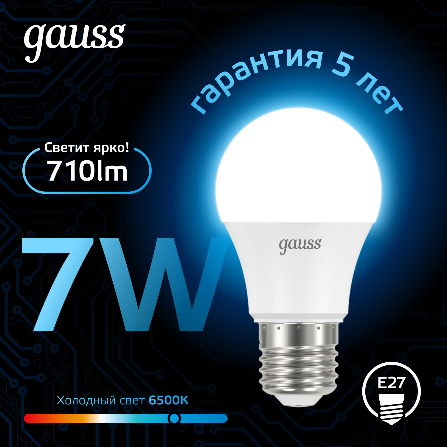 Лампа светодиодная gauss 102502307, E27, A60, 7 Вт, 6500 К