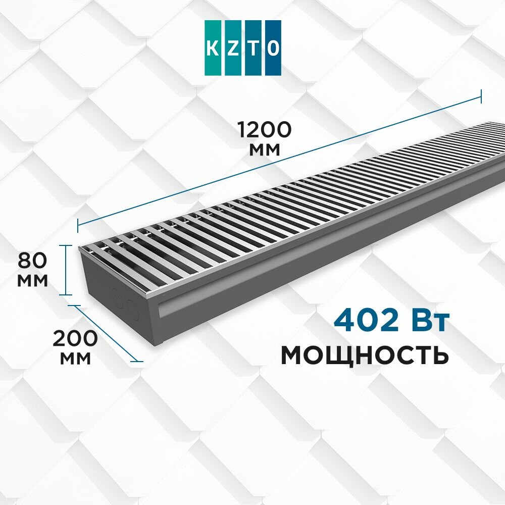 Внутрипольный конвектор водяной КЗТО Бриз 200x80x1200 U с решеткой из алюминиевого профиля с бесцветным анодированием шириной ламелей 5 мм информация: