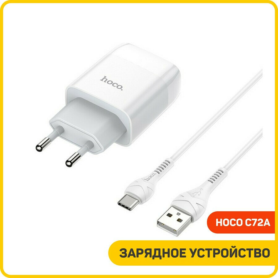 Сетевое зарядное устройство (СЗУ) Hoco C72A (USB) + кабель Type-C, 2.1 А, белый