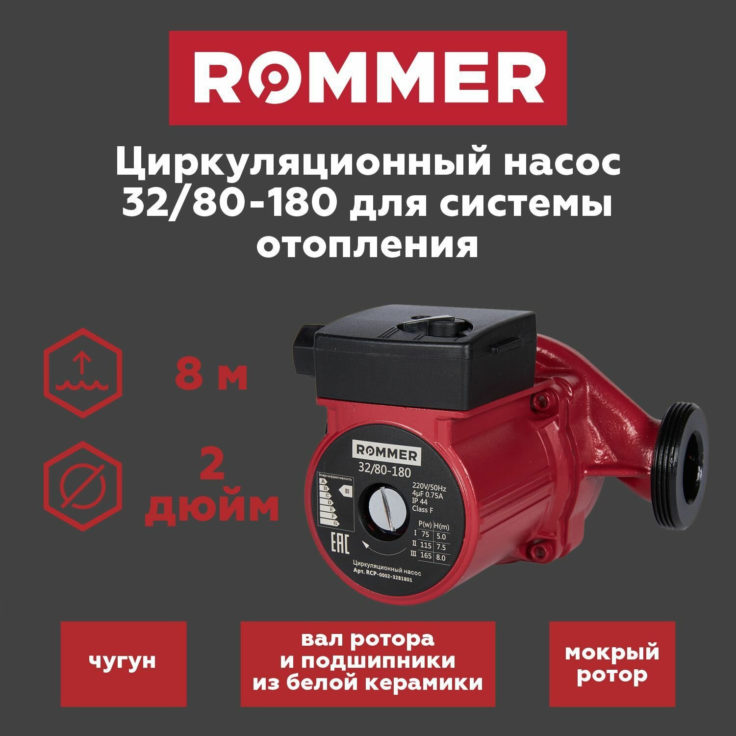 Циркуляционный насос Rommer 32/80-180 RCP-0002-3281801 информация: