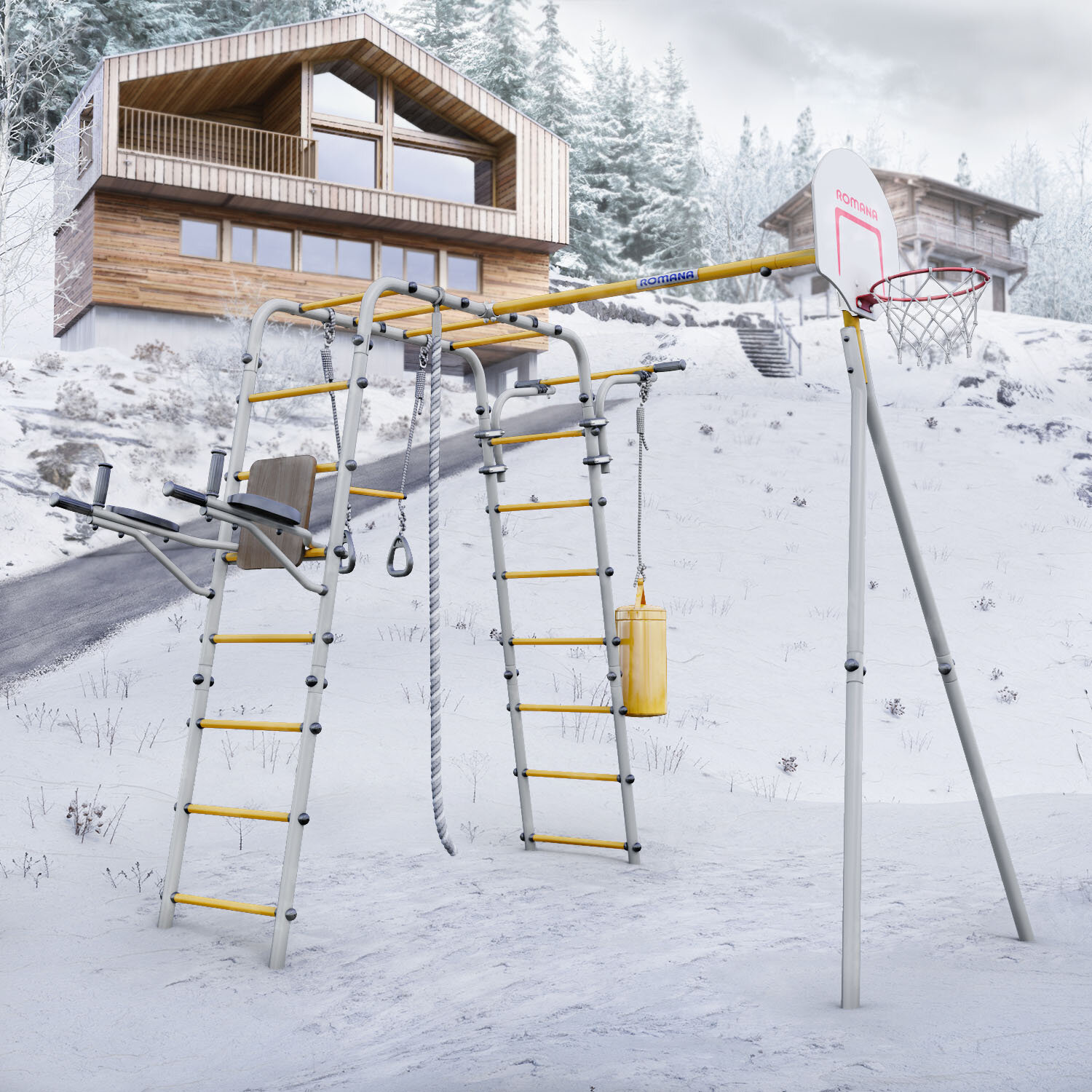 | В комплекте | баскетбольное кольцо, боксерская груша, гимнастические кольца, канат, лестница, рукоход, турник |