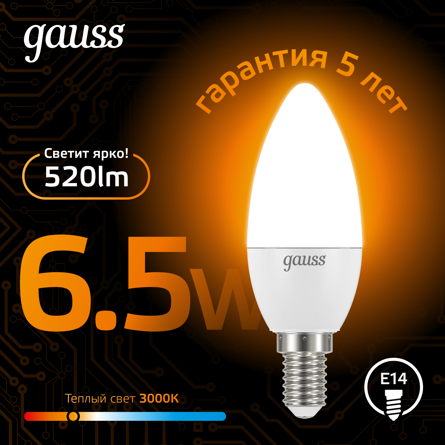 Отзывы на Лампочка светодиодная E14 Свеча 6.5W теплый свет 3000К упаковка 10 шт. Gauss Black