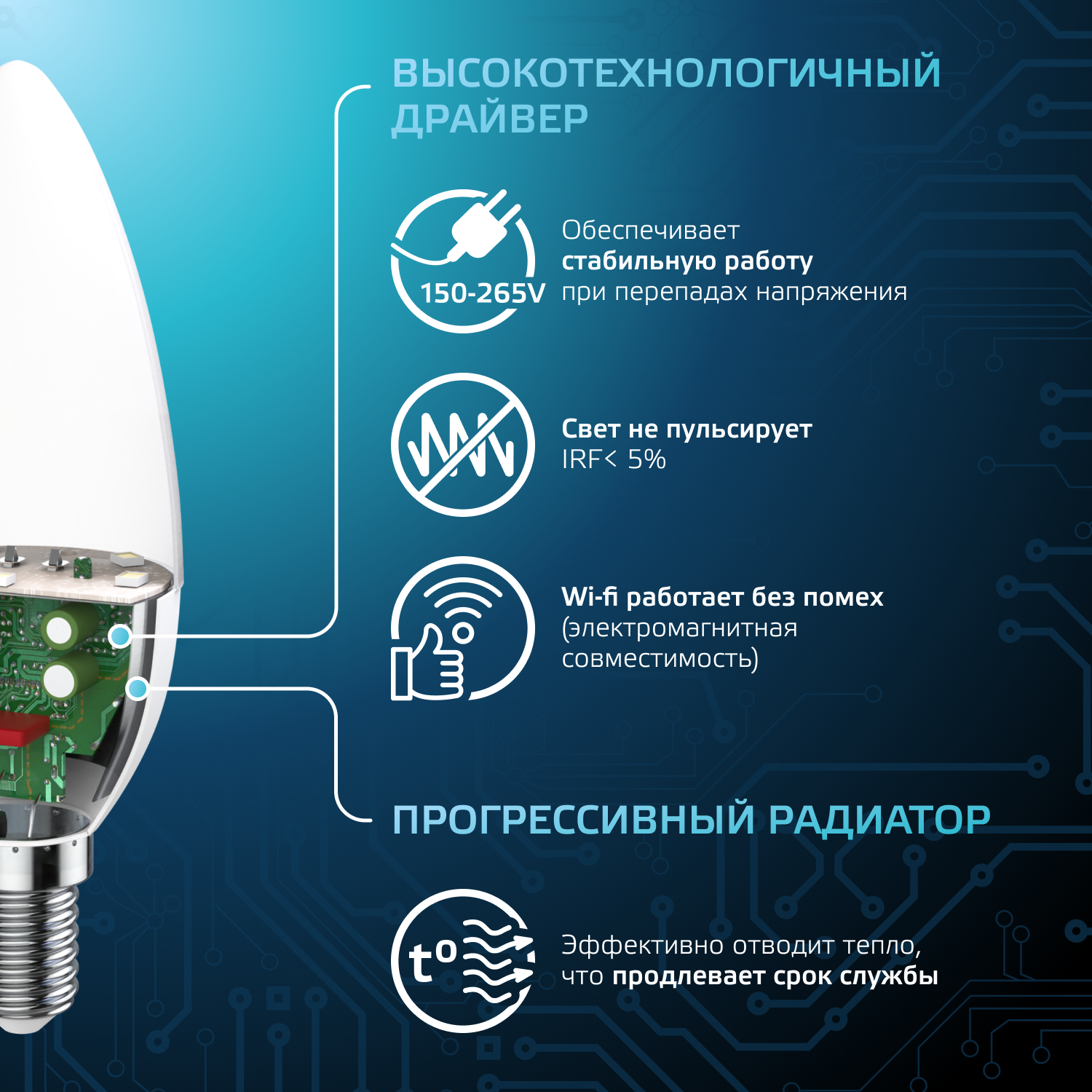 Лампочка светодиодная E14 Свеча 6.5W нейтр-белый свет 4100К упаковка 10 шт. Gauss Black информация: