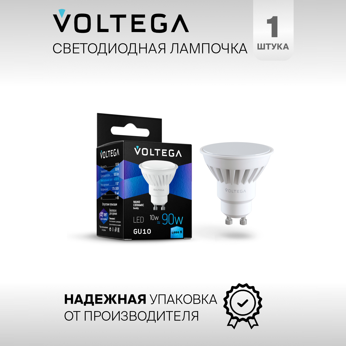 Отзывы на Лампочка светодиодная GU10 форма cофит 10W нейтральный белый Voltega Сeramics MR16 4000K 1 штука
